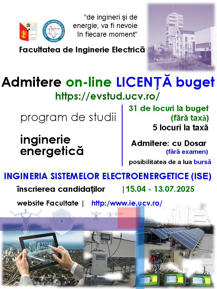 Programul de studii universitare de licență Ingineria Sistemelor Electroenergetice (locația: Craiova; limba de predare: română) aparține Domeniului Inginerie Energetică, fiind organizat de Facultatea de Inginerie Electrică, Departamentul IEEA (D25)